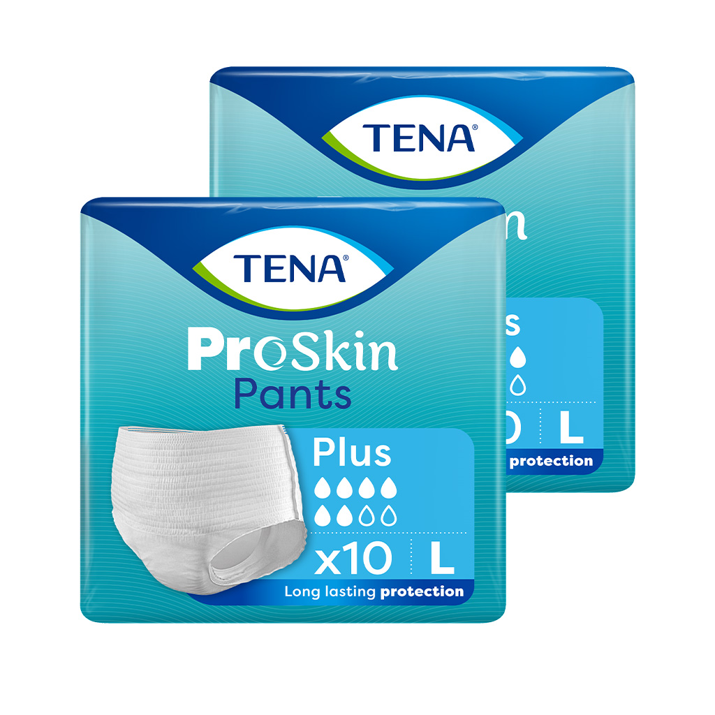 2X TENA Pants ProSkin Plus L (100–135 cm), majtki chłonne, 10 szt.