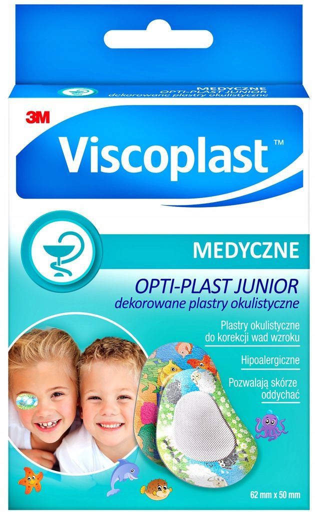 Viscoplast™ OPTI-PLAST JUNIOR dekorowane plastry okulistyczne to innowacyjne plastry na podłożu z włókniny, zaprojektowane w celu wspomagania terapii okluzyjnej oczu, szczególnie w leczeniu niedowidzenia spowodowanego zezem. Dzięki miękkiemu opatrunkowi i konstrukcji umożliwiającej swobodny ruch powieki, plastry zapewniają wygodę i mogą być noszone pod okularami korekcyjnymi.