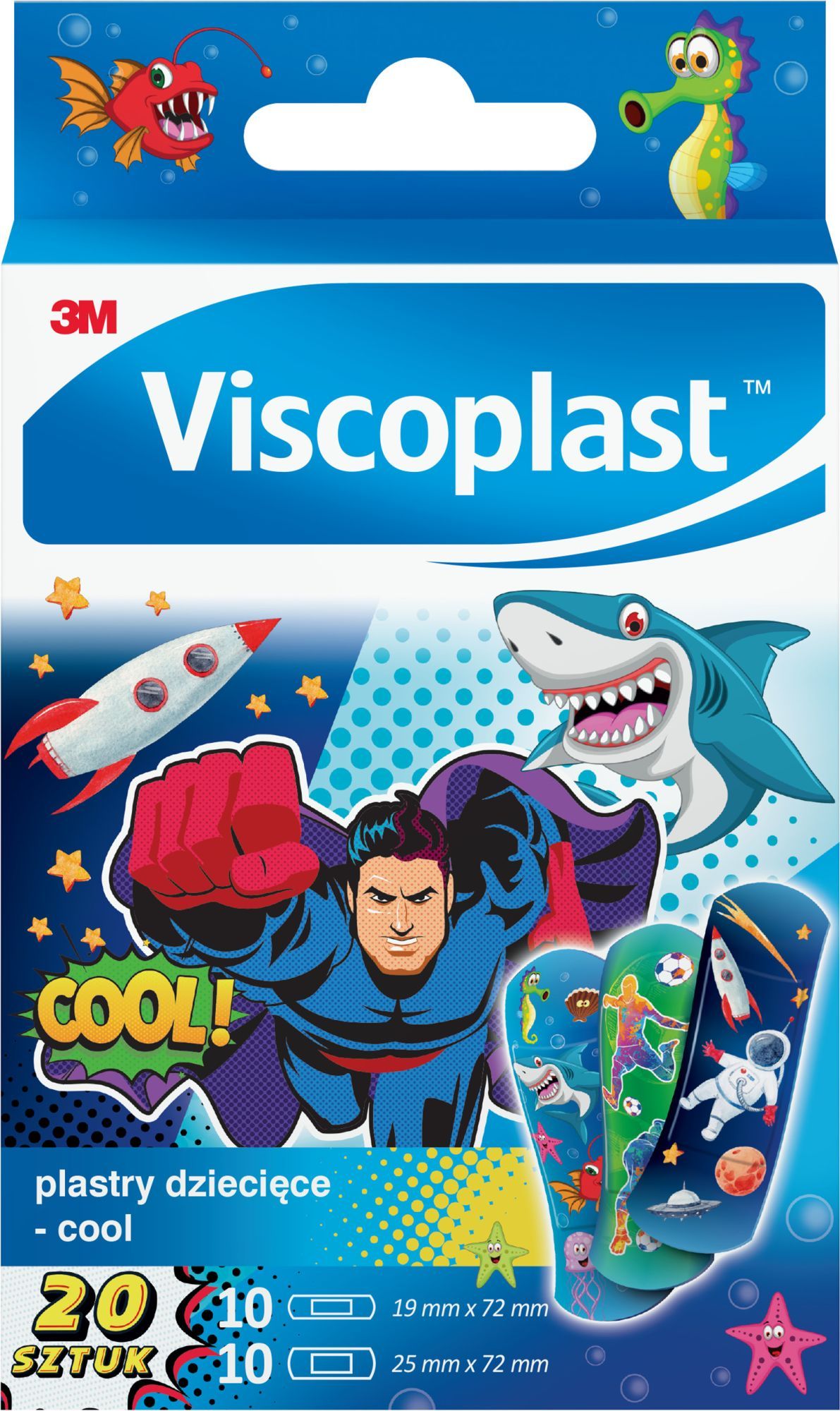 Viscoplast™ Plastry dziecięce – Cool to zabawne, cienkie plastry, które skutecznie zabezpieczą skaleczenia, zadrapania i otarcia u dzieci. Dzięki elastycznemu materiałowi, plaster dopasowuje się do powierzchni skóry, co sprawia, że dziecko nie poczuje go podczas noszenia.