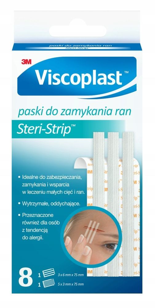 Viscoplast™ Steri-Strip™ to paski przeznaczone do zabezpieczania, zamykania i wspierania małych skaleczeń i ran. Stosuj je zgodnie z zaleceniami lekarza lub dostawcy usług zdrowotnych, aby skutecznie wspomóc gojenie małych ran – szczególnie po usunięciu szwów. Paski umożliwiają skórze oddychanie, zapewniając odpowiednią wentylację podczas procesu gojenia, i doskonale sprawdzają się jako element apteczki pierwszej pomocy.