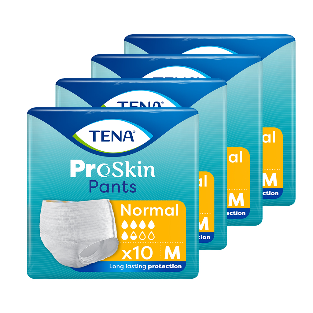 4x TENA PANTS PROSKIN NORMAL M (80-110 cm), majtki chłonne, 10 sztuk