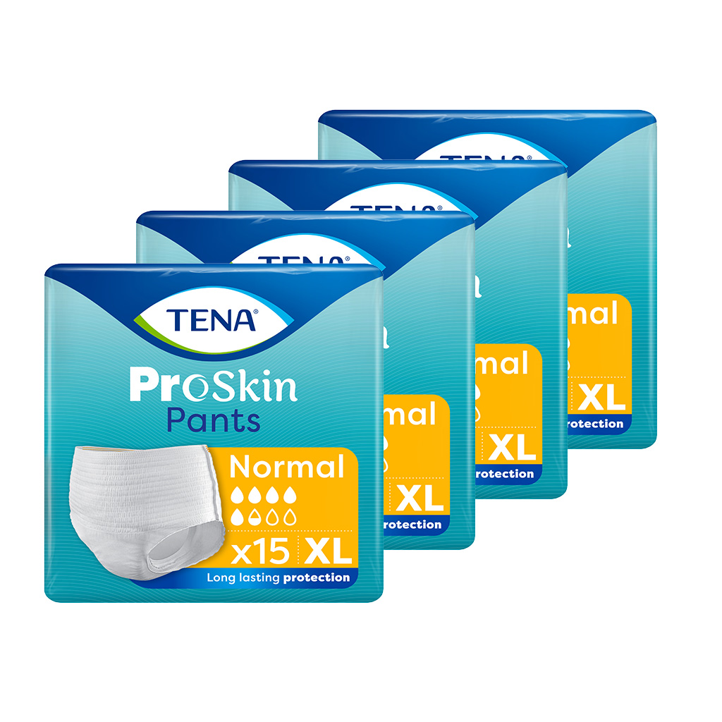 4X TENA PANTS PROSKIN NORMAL XL (120-160 cm), majtki chłonne, 15 sztuk