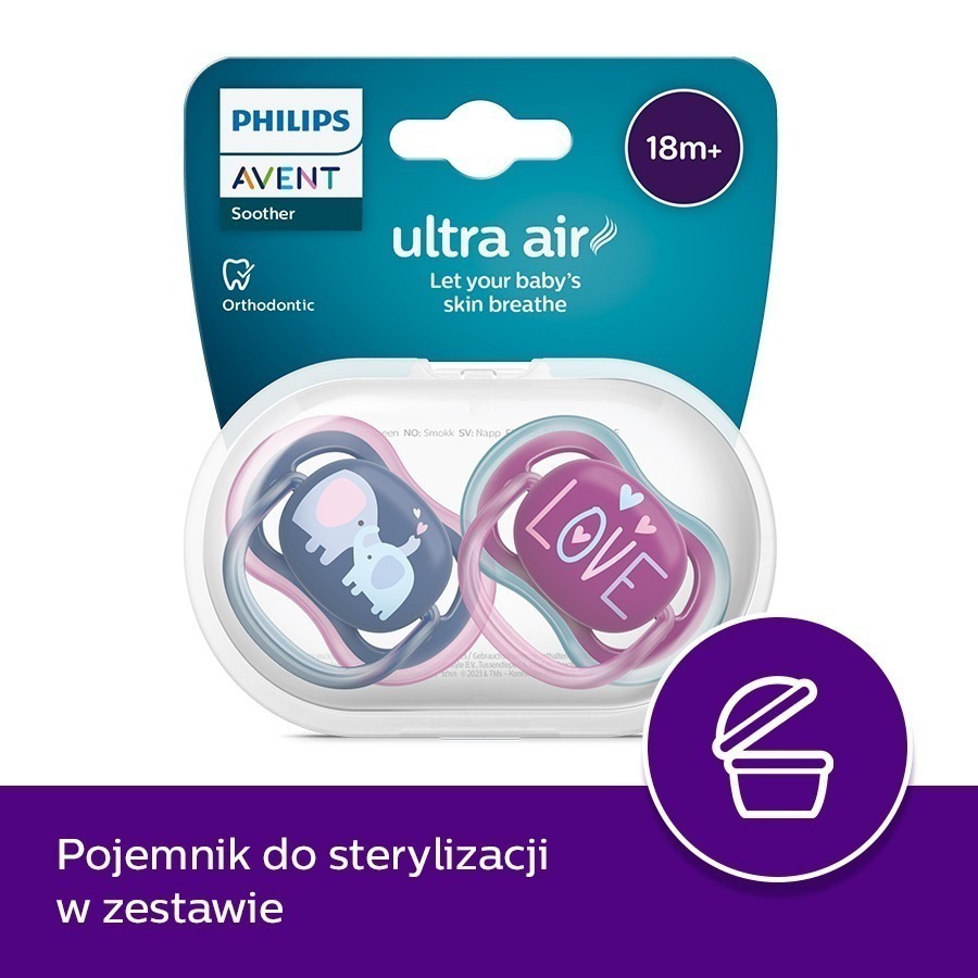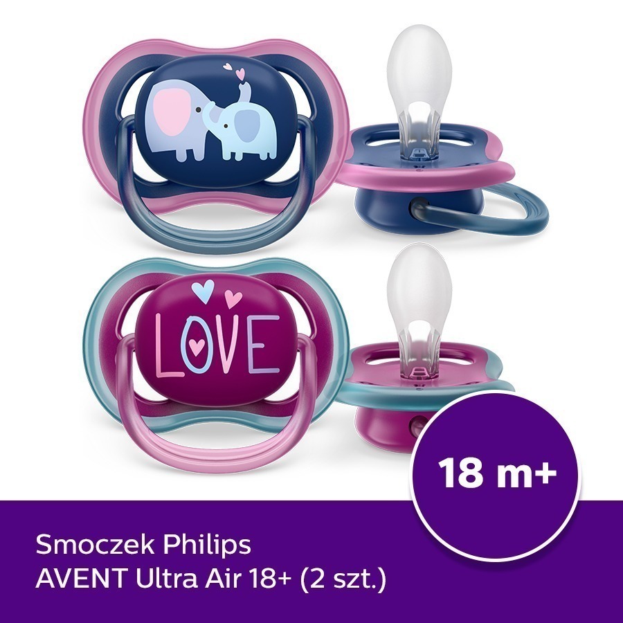 AVENT Smoczki Uspokajające ULTRA AIR Słonie/Love 18m+ (2 szt.)