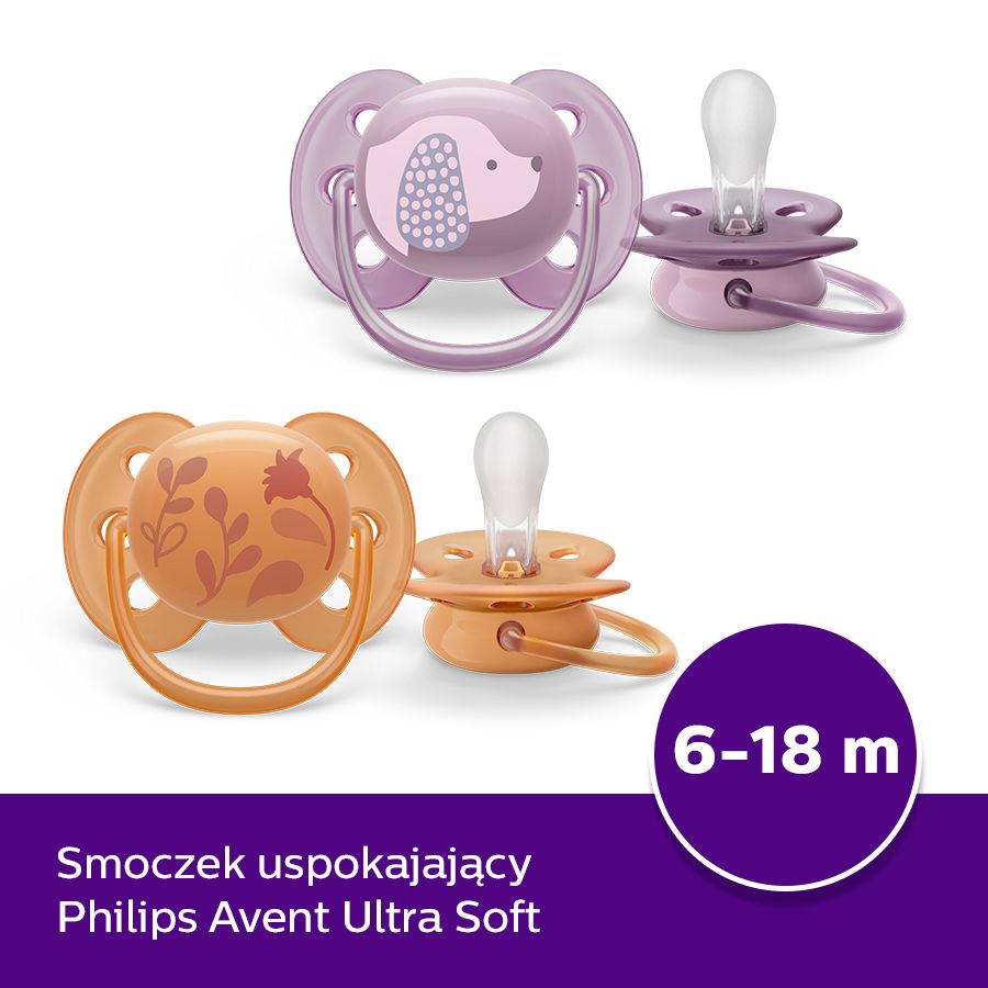 AVENT Smoczki Uspokajające ULTRA SOFT Piesek/Neutral 6-18m (2 szt.)