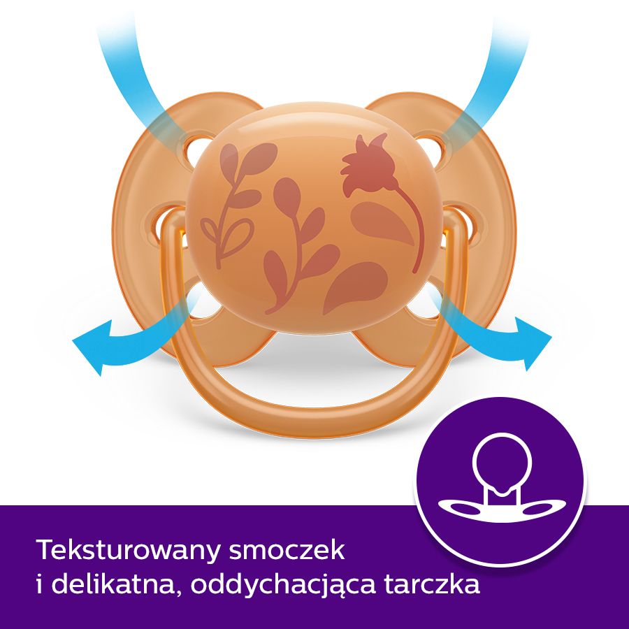 Smoczki AVENT ULTRA SOFT 6-18m zostały zaprojektowane z myślą o wrażliwej skórze dziecka. Miękka, elastyczna tarczka idealnie dopasowuje się do kształtu policzków, minimalizując ryzyko podrażnień i odgnieceń. Ortodontyczna konstrukcja wspiera prawidłowy rozwój podniebienia, zębów i dziąseł, a neutralna kolorystyka sprawia, że smoczki nadają się zarówno dla dziewczynki, jak i chłopca.