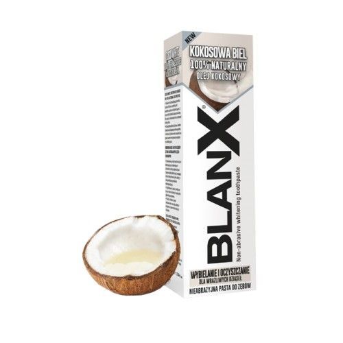 BLANX COCO WHITE to idealna propozycja dla miłośników białego uśmiechu, którzy cenią moc najlepszych składników zjednoczonych w unikalnym tandemie. Doskonała kompozycja porostu arktycznego oraz 100% naturalnego oleju kokosowego to idealna mieszanka naturalnych składników, które nie podrażniają, a dodatkowo olej kokosowy zapewnia przyjemne ukojenie dla dziąseł. Efekt synergii przeciwstawnych żywiołów – składników pochodzących z gorących tropików i arktycznych porostów zamkniętych w jednej tubce, które czerpią swoją siłę z dobrodziejstw natury. To doskonała pasta do codziennego użytku, dla wszystkich, którzy oprócz białego uśmiechu preferują świeży, delikatny miętowo-kokosowy smak.