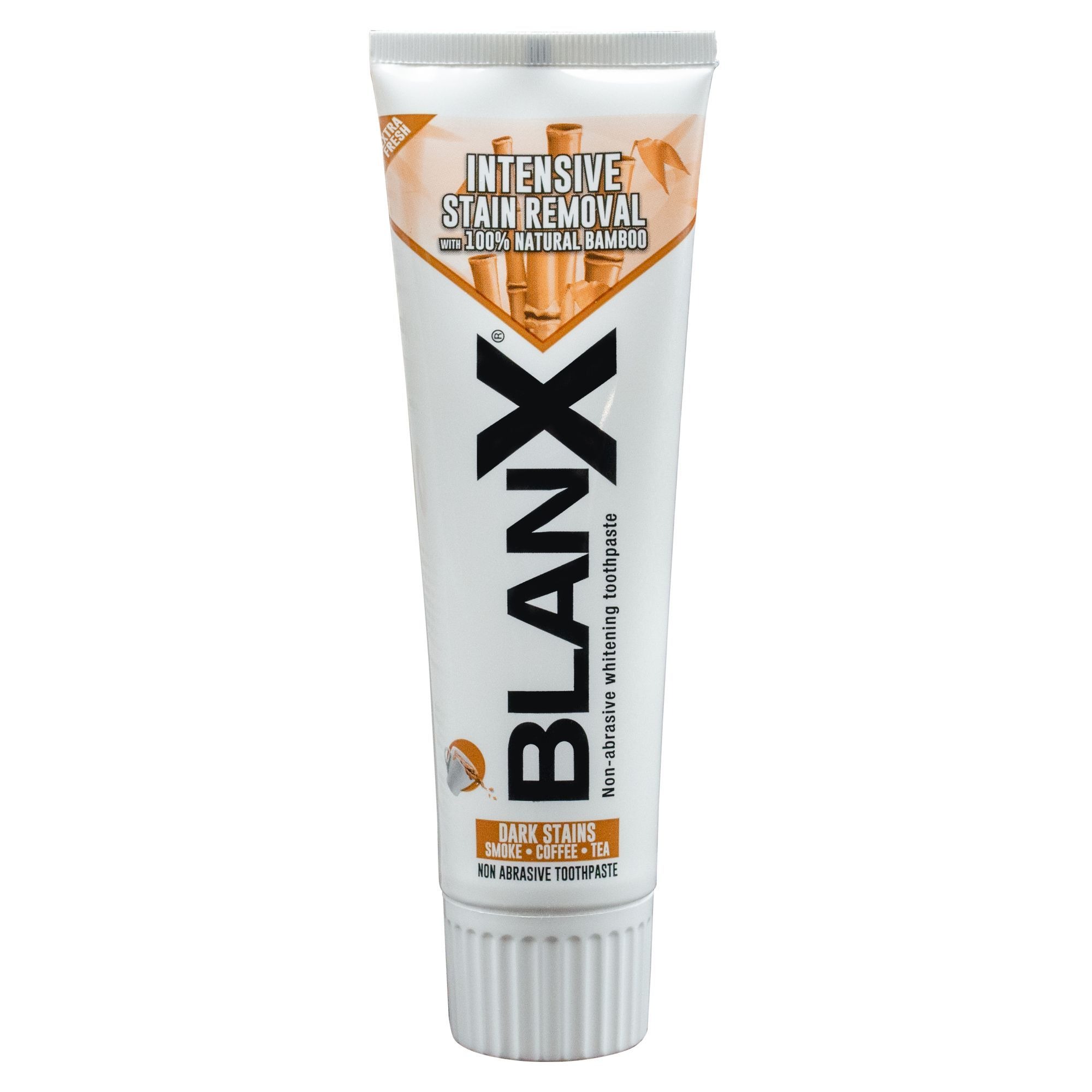 Wybielająca pasta BlanX przeciw osadom skutecznie usuwa wszelkie przebarwienia z zębów. Dzięki specjalnym mikrogranulkom z bambusa, pasta doskonale eliminuje osady powstałe po kawie, herbacie czy innych barwiących napojach. Charakteryzuje się intensywnym, świeżym smakiem, który długo utrzymuje uczucie odświeżenia oddechu.