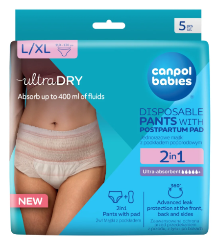 Majtki jednorazowe 2w1 Canpol babies to innowacyjne rozwiązanie, które łączy funkcję ultrachłonnego podkładu poporodowego oraz oddychających majtek w jednym produkcie. Zapewniają maksymalną ochronę i komfort w pierwszych dniach po porodzie, gdy krwawienie jest najintensywniejsze.