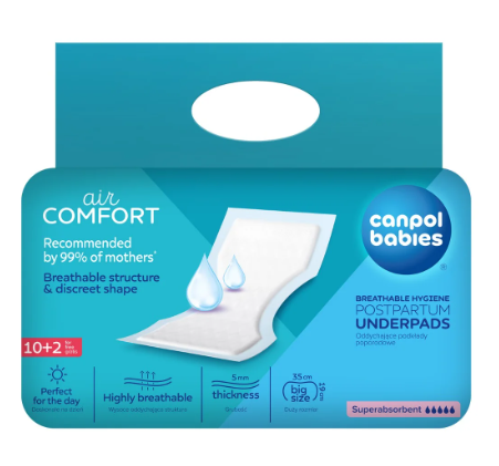 Oddychające podkłady poporodowe Canpol babies to niezastąpiona pomoc dla kobiet w okresie połogu. Zapewniają komfort, higienę i skuteczną ochronę, zarówno w domu, jak i podczas pobytu w szpitalu.