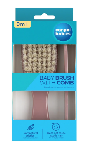 Canpol Babies Szczotka i Grzebień z Naturalnym Włosiem – Różowa