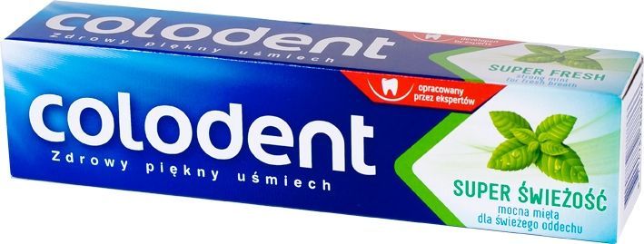 Colodent pasta do zębów 100ml Super Świeżość to produkt wzbogacony o intensywną miętę, która zapewnia długotrwałą świeżość oddechu. Zawiera również fluor, który pomaga chronić zęby przed próchnicą.