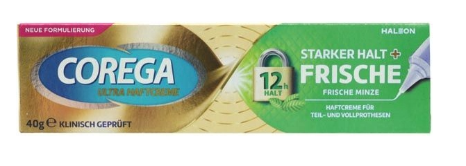 Corega Super Mocny Frische Minze to specjalistyczny krem mocujący do protez zębowych, który zapewnia: