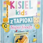 To naturalny, pyszny i zdrowy deser na bazie mąki z tapioki, która jest źródłem wartościowej energii. Kisiel ma delikatny ananasowy smak oraz zawiera najcenniejsze z superfoods – baobab i kurkumę, które są bogate w antyoksydanty, chroniąc komórki przed negatywnym działaniem wolnych rodników. Kisiel został wzbogacony witaminą C.