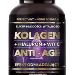 Kolagen + Hialuron + Witamina C Anti-Age to trójskładnikowy suplement diety, który wspiera zdrowie skóry, stawów i kości. Zawiera hydrolizat kolagenu, kwas hialuronowy oraz witaminę C, które działają synergistycznie, aby poprawić elastyczność skóry, wspomóc regenerację tkanek i wzmocnić odporność organizmu.