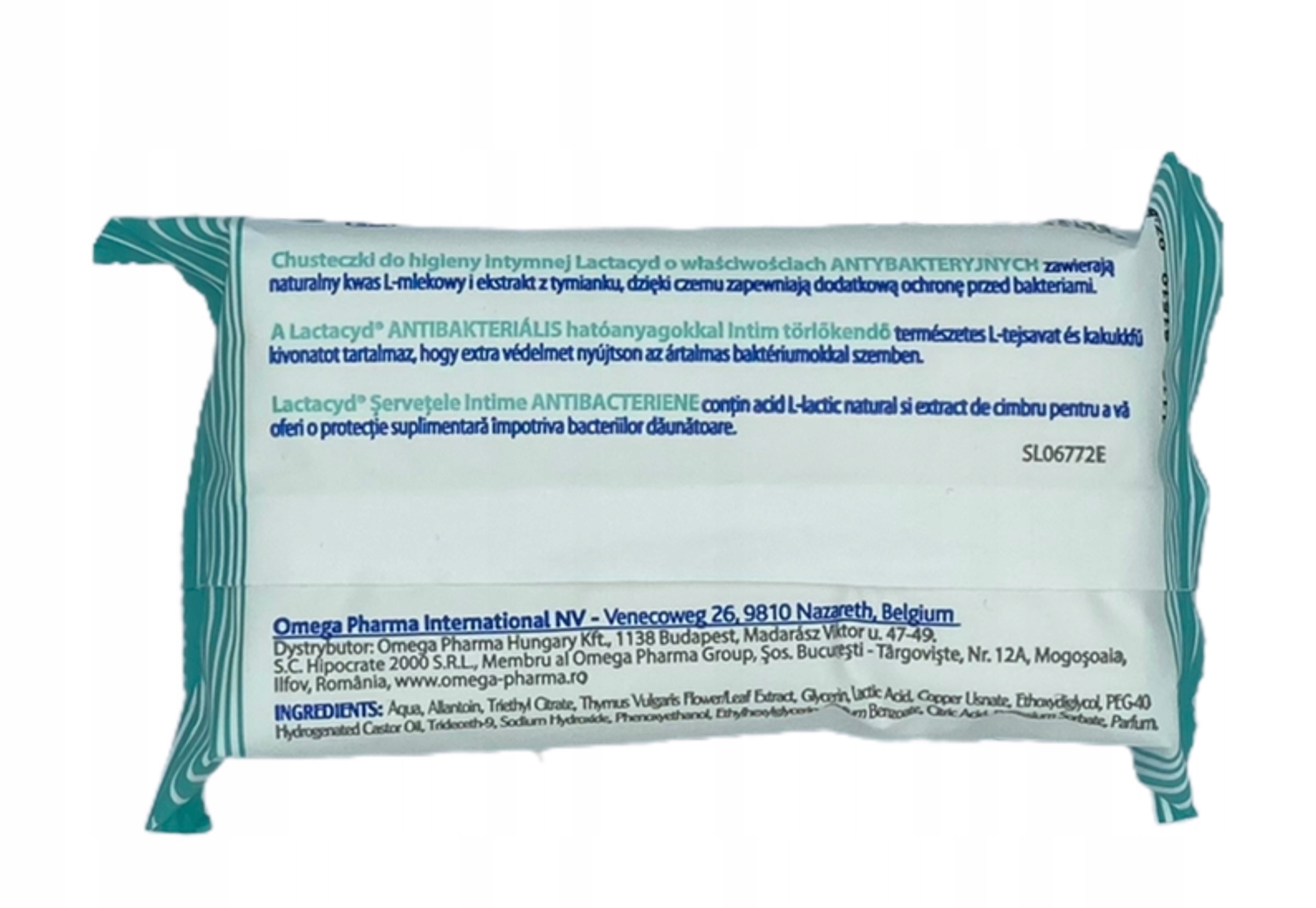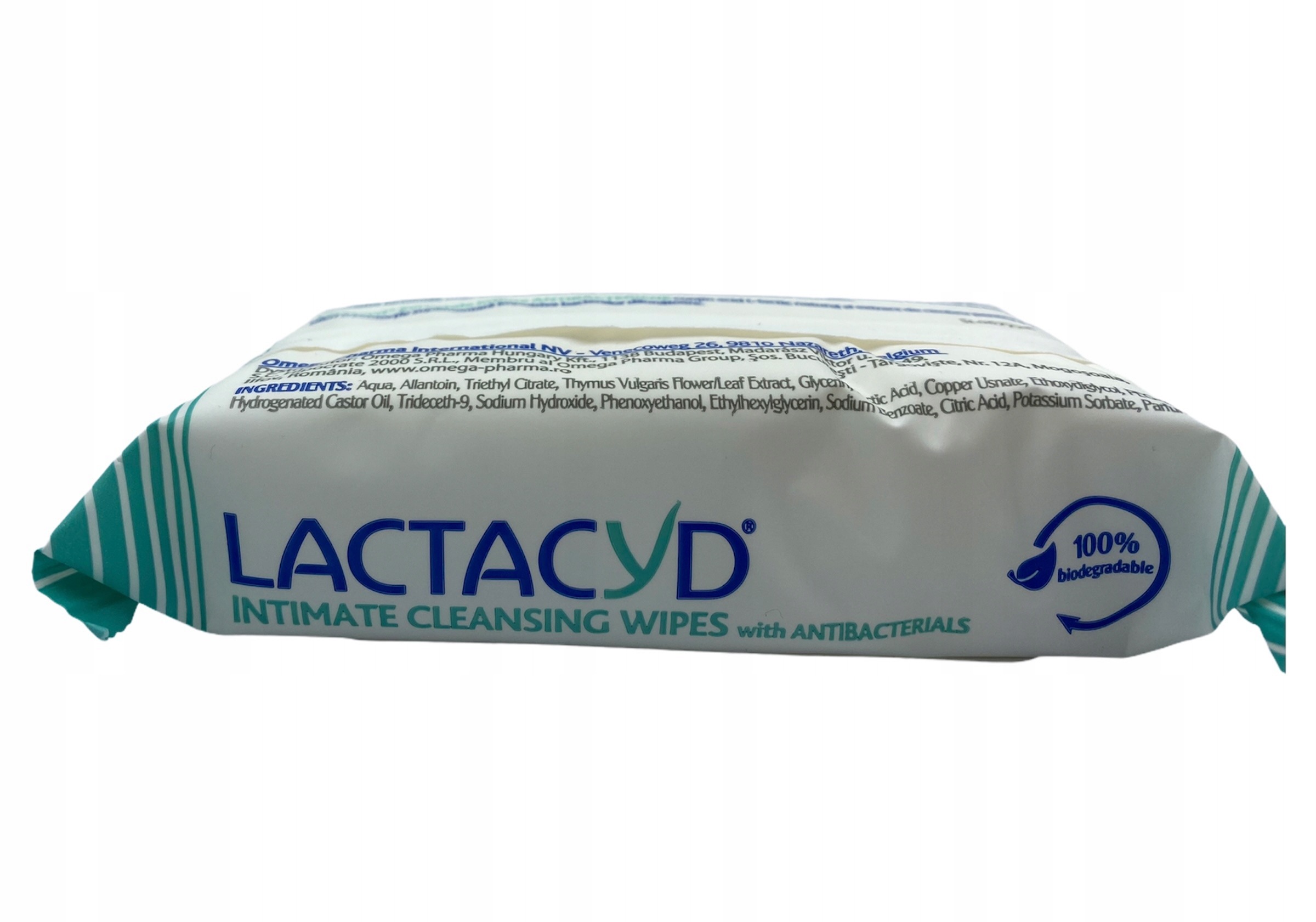Chusteczki do higieny intymnej Lactacyd Antybacterial zawierają naturalny kwas L-mlekowy i antyseptyczny ekstrakt z tymianku, zapewniając dodatkową ochronę przed infekcjami bakteryjnymi.