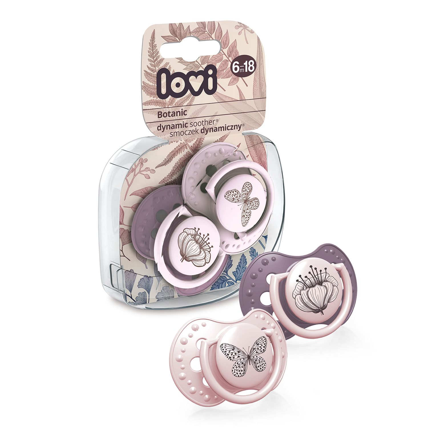 LOVI Smoczek do uspokajania silikonowy dynamiczny 6-18m 2szt. Botanic Girl