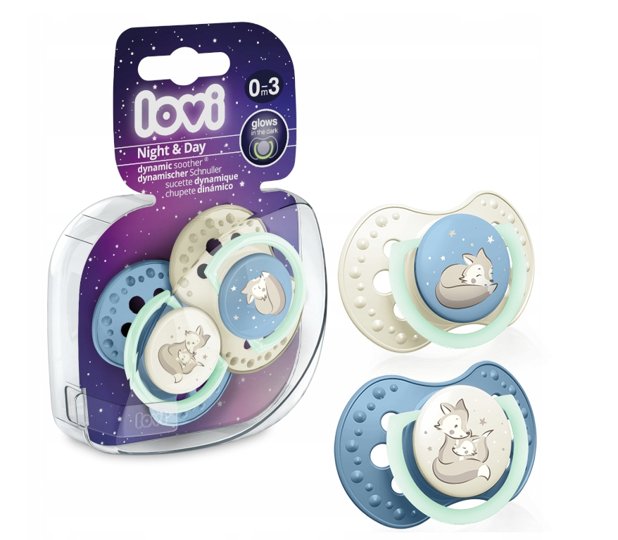 LOVI Smoczek silikonowy dynamiczny 0-3m 2szt Night&Day Boy