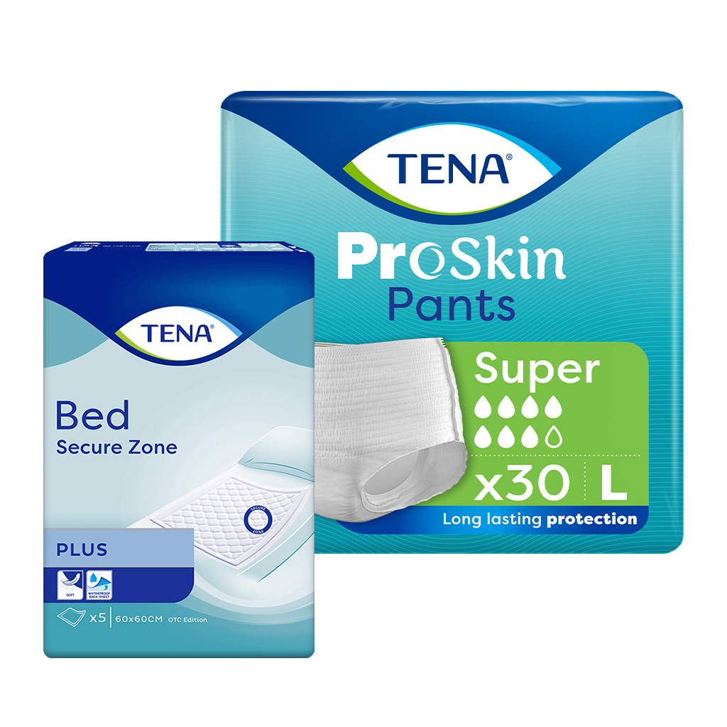 Zestaw Majtki chłonne TENA Pants Super L dla dorosłych z podkładami chłonnymiTENA PANTS PROSKIN SUPER L (100–135 cm), majtki chłonne, 30 sztuk