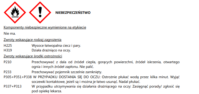 Skład: etanol 96%, substancje pomocnicze: 2-butanon, makrogologlicerolu kokosan, substancje zapachowe, kwas mlekowy, woda oczyszczona.