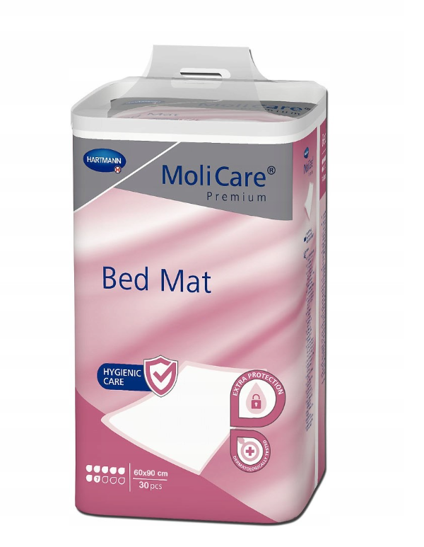 Dlaczego warto wybrać MoliCare Premium Bed Mat? Dzięki chłonności na poziomie 7 kropli sprawia, że idealnie sprawdza się w przypadku średniego i ciężkiego nietrzymania moczu, zapewniając suchość.