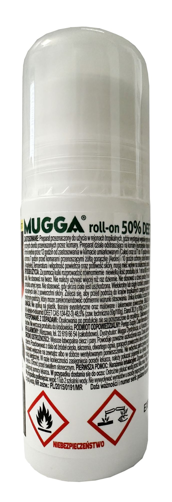 Mugga Roll On 50% to sztyft / preparat w rolce do smarowania na odkryte części ciała. Przeznaczony dla wszystkich osób, które chcą się uchronić przed ukąszeniami. Mugga Roll na komary zawiera substancję odstraszającą DEET w stężeniu 50%. Działa odstraszająco na wszystkie insekty, min. kleszcze, muchy, meszki, moskity, komary (tropikalne i europejskie), muchy, gzy, kuczmany. Mugga 50 idealnie sprawdza się w trudnych warunkach tropikalnych.