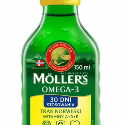 Möller’s Tran Norweski o aromacie cytrynowym– najwyższej jakości, oryginalny tran z Norwegii. Stanowi uzupełnienie codziennej diety w nienasycone kwasy tłuszczowe omega-3 oraz witaminy D3, A i E.