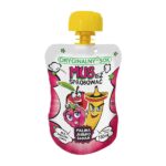 Pyszna, owocowa kompozycja jabłek, malin i bananów w wygodnej formie musu! Idealny dla dzieci i dorosłych — świetnie sprawdzi się w szkole, podróży lub jako zdrowa, słodka przekąska między posiłkami.