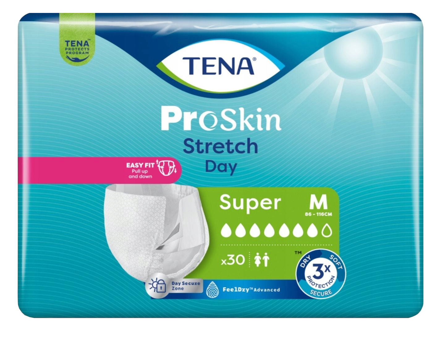 TENA Stretch ProSkin Day – pieluchomajtki elastyczne, rozmiar M, 30 sztuk