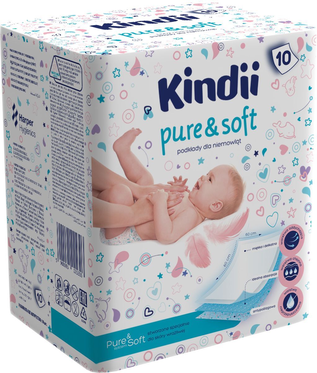 Podkłady Kindii Pure & Soft zapewniają higieniczne warunki do przewijania, zarówno w domu, jak i poza nim, np. podczas spaceru czy podróży. Doskonale sprawdzają się także w ochronie pościeli w łóżeczku czy wózku. Dzięki swojej trójwarstwowej strukturze, zapewniają idealną ochronę przed przeciekaniem i zabrudzeniami, a ich miękka i delikatna powierzchnia jest przyjazna dla wrażliwej skóry maluszka. Środkowa warstwa z 100% celulozy skutecznie absorbuje wilgoć, a spodnia warstwa chroni przed przeciekaniem i nie przesuwa się.