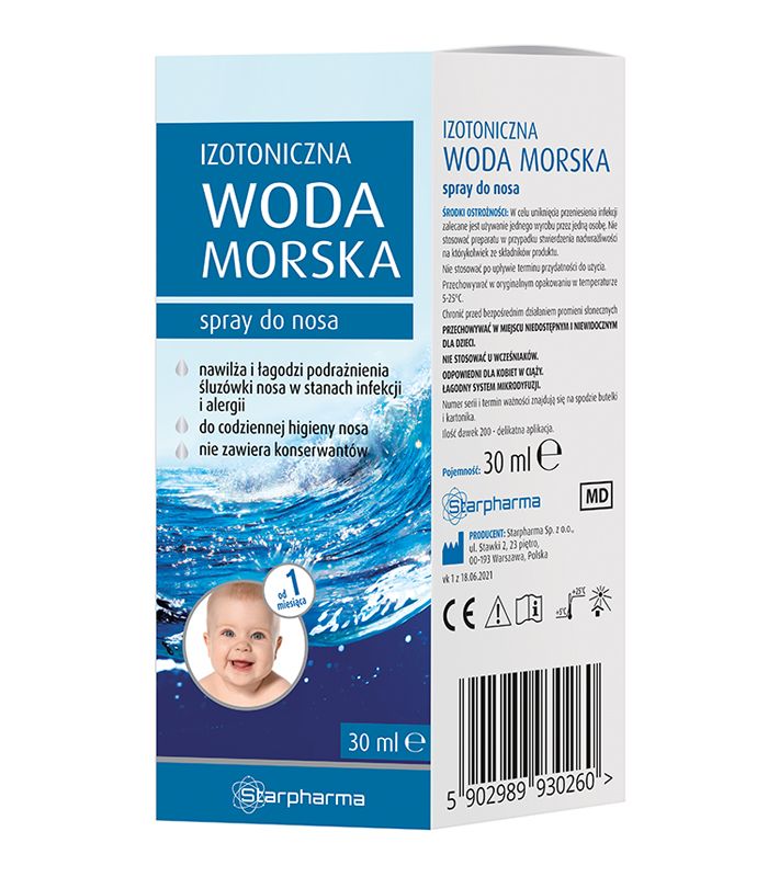 Izotoniczna woda morska to preparat, który doskonale sprawdza się w codziennej higienie nosa, nawilżaniu błon śluzowych oraz ich oczyszczaniu. Pomaga w walce z problemem suchej śluzówki oraz zatkanego nosa, który może wystąpić u dzieci i dorosłych. Często spotykany dyskomfort związany z utrudnionym oddychaniem, wywołany alergiami, przeziębieniami, bądź przebywaniem w klimatyzowanych lub ogrzewanych pomieszczeniach, jest szczególnie uciążliwy podczas snu i jedzenia. Izotoniczna woda morska stanowi skuteczne rozwiązanie dla osób zmagających się z suchością śluzówki nosa.