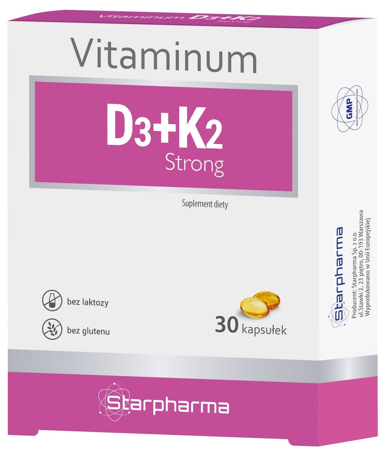 olej słonecznikowy, otoczka kapsułki (żelatyna, substancja utrzymująca wilgoć: glicerol, woda oczyszczona), menachinon (witamina K2), cholekalcyferol (witamina D3).