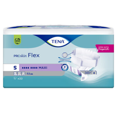 Pieluchomajtki z pasem mocującym TENA Flex ProSkin to produkty chłonne zalecane do codziennego stosowania w średnim i ciężkim nietrzymaniu moczu. Pieluchomajtki z pasem, pozwalają na łatwiejsze i wygodniejsze zmienianie oraz umożliwiają wygodne, dyskretne dopasowanie. TENA Flex ProSkin mają anatomiczny kształt i zapewniają barierę ochronną przed przeciekaniem dzięki podwójnym wkładom chłonnym. Zapewniają Potrójną Ochornę przed przeciekaniem, długotrwałą suchość i miękkość, wspierając zdrowie skóry. Technologia FeelDry AdvancedTM użyta w ich produkcji zapewnia szybsze wchłanianie moczu i zamknięcie go z dala od skóry. Specjalne, w pełni oddychające materiały, z których wykonany jest produkt, zapewniają komfort i wspierają zdrowie skóry. Produkty TENA Flex ProSkin zostały przebadane i otrzymały akredytację Skin Health Alliance – wiodącej, niezależnej instutycji zrzeszającej ekspertów zajmujących się zdrowiem skóry. Otrzymanie akredytacji Skin Health Alliance wymaga spełnienia szeregu rygorystycznych wymagań dotyczących wpływu produktu na zdrowie skóry. Akredytacja Skin Health Alliance daje pewność, że produkty TENA Flex ProSkin są przyjazne dla skóry. TENA Flex ProSkin są testowane dermatologicznie. Pieluchomajtki TENA Flex ProSkin są wykonane z delikatnego i miękkniego materiału, który zapewnia komfort i zapobiega podrażnieniom.