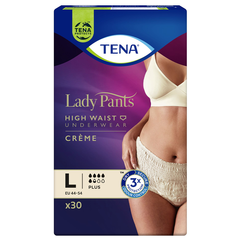 TENA Lady Pants to bielizna chłonna dla kobiet, które, w przypadku wycieku moczu, wchłania mocz do wnętrza wkładu chłonnego oraz utrzymują go w jego wnętrzu dzięki specjalnemu super absorbentowi. Jednocześnie zabezpieczają przed wydostaniem się nieprzyjemnego zapachu na zewnątrz. Nie odznaczają się pod ubraniem, zapewniając pełen komfort i dyskrecję w trakcie chodzenia.