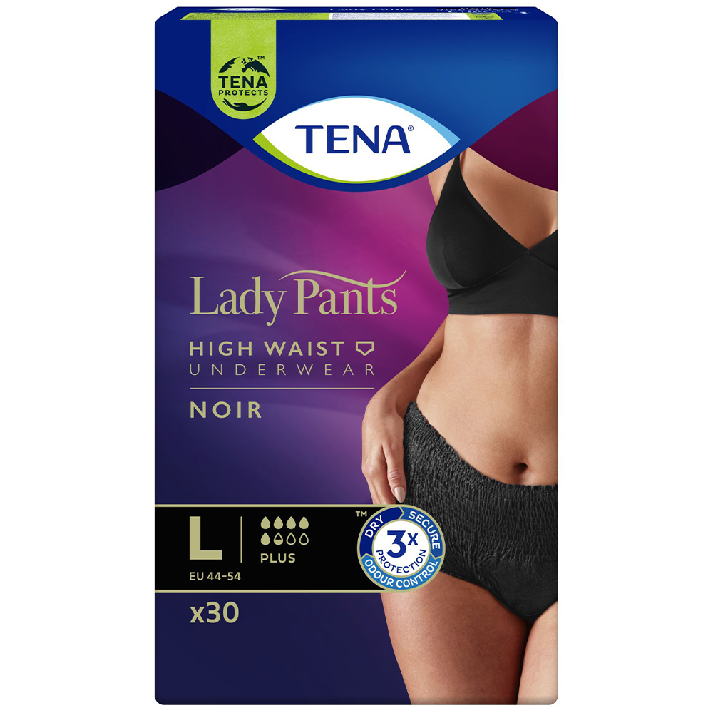 TENA Lady Pants Noir L to pierwsza w Polsce bielizna chłonna zaprojektowana dla kobiet. Bielizna chłonna zalecana jest do codziennego stosowania w średnim i ciężkim nietrzymaniu moczu (poziom chłonności 5,5/8). TENA Lady Pants Noir L przeznaczone są dla osób chodzących, poruszających się choćby po domu, o rozmiarze 95-130 cm w pasie. Bielizna chłonna TENA Lady Pants zapewnia unikalną ochronę dzięki wkładowi chłonnemu dopasowanemu do kobiecej anatomii, pełną dyskrecję dzięki czarnemu kolorowi i kontroli nieprzyjemnego zapachu oraz wysoki komfort dzięki bardzo miękkiemu i w pełni oddychającemu materiałowi. TENA Lady Pants Noir są zakładane jak zwykła bielizna, zapewniają wysoki komfort i dyskrecję. Bielizna chłonna TENA dobrze przylegają do ciała, dzięki czemu nie odznaczają się pod ubraniem. Bielizna chłonna i majtki chłonne TENA dostępne są w różnych rozmiarach i poziomach chłonności, również w refundacji.