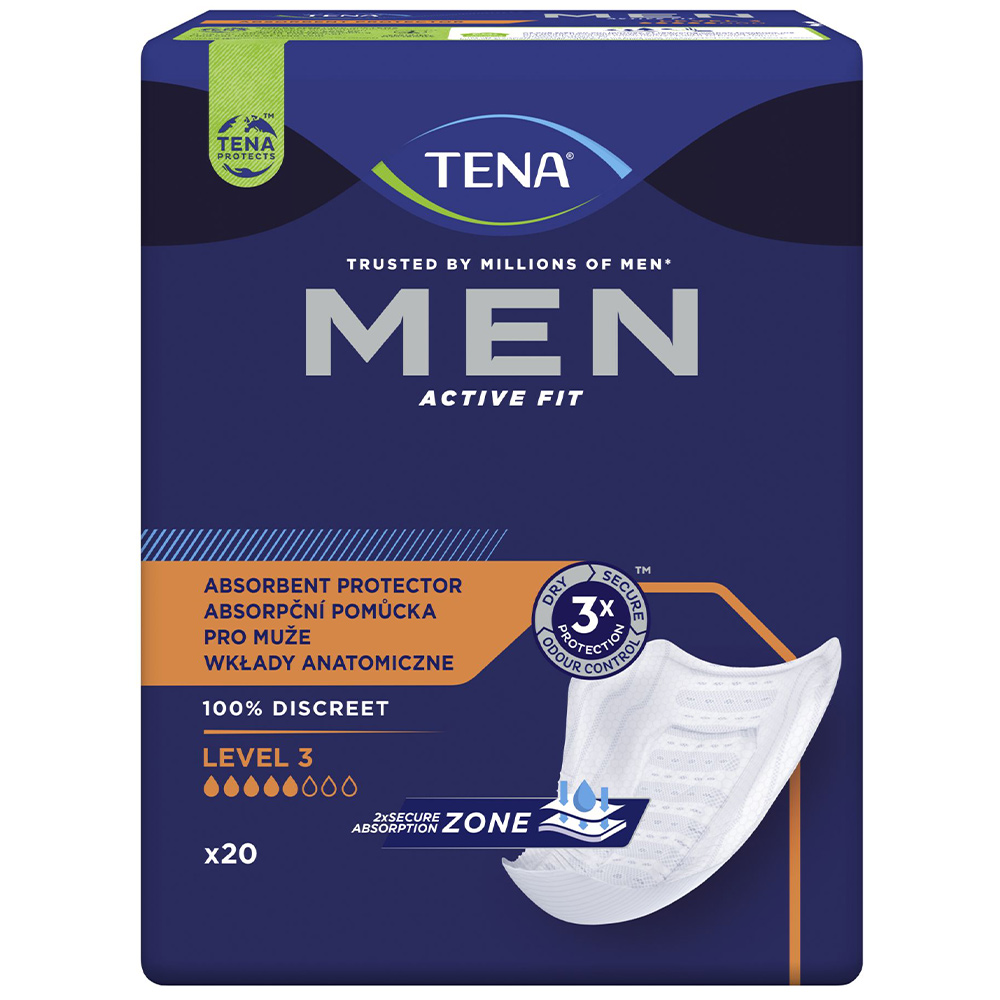 Ochrona średniego stopnia stworzona specjalnie dla mężczyzn z nietrzymaniem moczu. Łatwe w użyciu – przyklejone do bielizny doskonale chronią, są dyskretne i utrzymują się na miejscu. Kubełkowy kształt zapewnia komfort, ochronę i dyskrecję. Odpowiednie do stosowania w ciągu nocy.