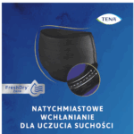 Bielizna wykonana jest z oddychającego materiału przypominającego tkaninę, nie zawiera środków zapachowych i jest delikatna dla skóry. Majtki chłonne TENA Lady Pants Plus Black zapewniają potrójną ochronę przed przeciekaniem, nieprzyjemnym zapachem oraz wilgocią. Uczucie suchości i świeżości znacznie poprawia komfort noszenia.