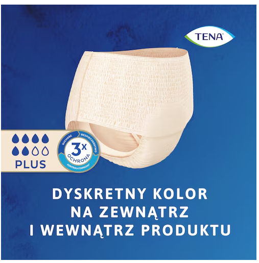 Bielizna wykonana jest z oddychającego materiału przypominającego tkaninę, nie zawiera środków zapachowych i jest delikatna dla skóry. Majtki chłonne TENA Lady Pants Plus Creme OTC Edition zapewniają potrójną ochronę przed przeciekaniem, nieprzyjemnym zapachem oraz wilgocią. Uczucie suchości i świeżości znacznie poprawia komfort noszenia.