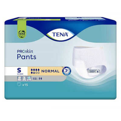 Majtki chłonne TENA Pants Normal S to produkty chłonne zalecane do codziennego stosowania w średnim i ciężkim nietrzymaniu moczu (poziom chłonności 5,5/8). TENA Pants Normal S przeznaczone są dla osób chodzących, poruszających się choćby po domu, o rozmiarze 65-85 cm w pasie. TENA Pants dzięki systemom Feel Dry i Odour Neutralizer zapewniają suchość i neutralizują nieprzyjemny zapach. TENA Pants są zakładane jak zwykła bielizna, zapewniają wysoki komfort i dyskrecję. Majtki chłonne TENA dobrze przylegają do ciała, dzięki czemu nie odznaczają się pod ubraniem. Dostępne są w różnych rozmiarach i poziomach chłonności, również w refundacji.