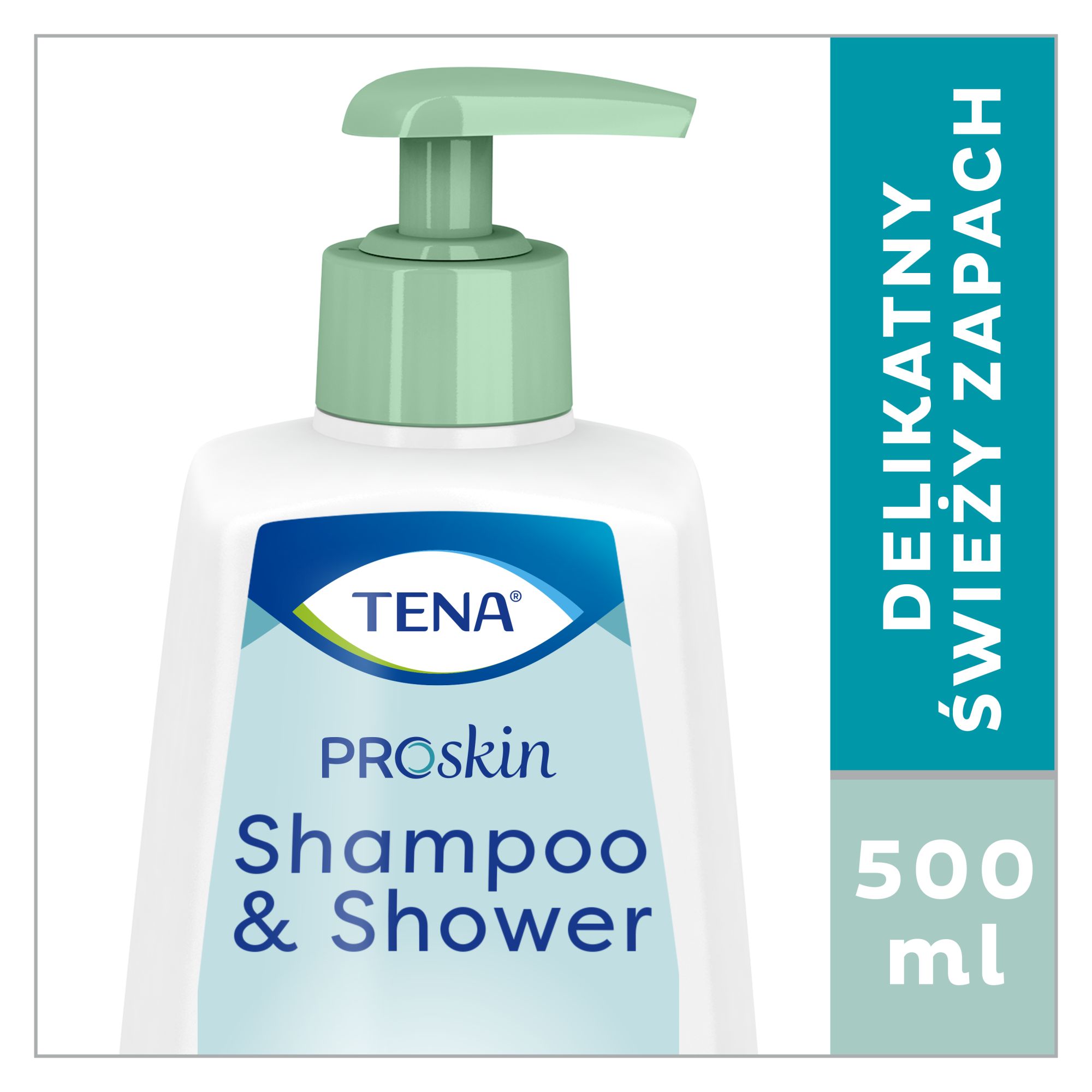 TENA Shampoo & Shower to unikalny produkt 2 w 1, który łączy funkcję delikatnego żelu pod prysznic oraz odżywczego szamponu do włosów. Został specjalnie opracowany dla osób starszych, które wymagają delikatnej, ale skutecznej pielęgnacji. Dzięki łagodnej formule zapewnia kompleksową higienę, oczyszczając skórę i włosy bez podrażnień.