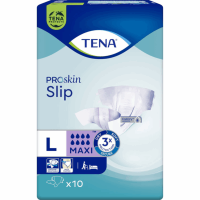 - Produkty TENA Slip ProSkin zapewniają Potrójną Ochronę przed przeciekaniem, długotrwałą suchość i miękkość, wspierając zdrowie skóry.
