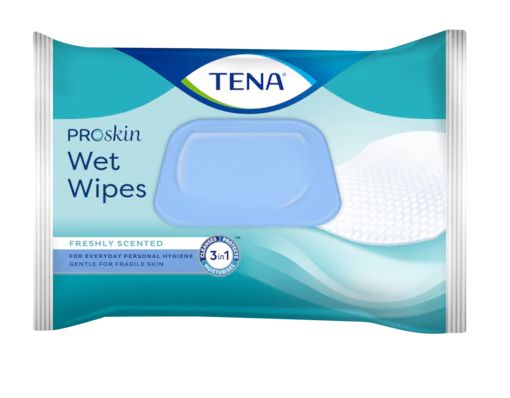 TENA Wet Wipes to delikatne i skuteczne chusteczki nawilżane 3w1, przeznaczone do oczyszczania, ochrony i regeneracji skóry, szczególnie w okolicach intymnych. Doskonale sprawdzają się podczas zmiany produktów chłonnych, eliminując nieprzyjemne zapachy związane z nietrzymaniem moczu.