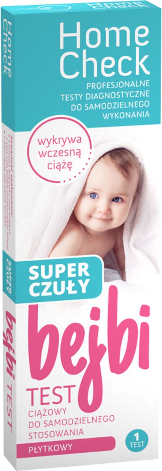 Milapharm Home Check Test ciążowy Bejbi super czuły pozwala na wczesne wykrycie stężenia hormonu hCG w moczu, co pomaga kobietom w ocenie możliwego stanu ciąży. Jest to test do samodzielnego wykonania w warunkach domowych.