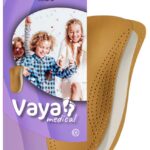 Wkładki ortopedyczne dla dzieci Vaya Comfortino to skórzane wkładki wielokrotnego użycia, które zapewniają komfort stopom płasko-koślawym. Obniżenie fizjologicznych łuków stopy, jakie występuje przy płaskostopiu, jest redukowane dzięki wbudowanym elementom, pelocie i klinowi. Pelota wspiera łuk poprzeczny i rozluźnia mięśnie, więzadła i ścięgna. Klin, podpierając łuk podłużny, rozkłada obciążenie stopy na podłoże. Wkładka odpowiednio ustawia piętę w prawidłowym położeniu, dzięki wyprofilowanej spodniej warstwie z naturalnego lateksu.