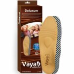 Vaya Deluxum to pełne skórzane wkładki ortopedyczne wielokrotnego użycia dla stóp z zespołem przeciążenia przedstopia, dla osób aktywnych, wykonujących pracę stojącą lub wymagającą intensywnego chodzenia. Odciążając i amortyzując kości śródstopia zmniejszają dolegliwości bólowe stóp. Obniżenie fizjologicznych łuków stopy jakie występuje przy płaskostopiu, jest redukowane dzięki wbudowanemu specjalnemu profilowi i pelocie. Profil wspiera łuk podłużny lekko supinując stopę, zapewnia komfort i elastyczność podczas chodzenia. Pelota podpierająca łuk śródstopia skutecznie zapobiega zmęczeniu stóp. Amortyzujący krążek umieszczony w okolicy pięty, redukuje mikro wstrząsy podczas chodzenia po twardym podłożu. Jeśli masz problem z płaskostopiem to proponowane wkładki Deluxum będą dla Ciebie doskonałym rozwiązaniem. Zapobiegają opadaniu wysklepienia łuku podłużnego, odciążają i amortyzują śródstopie. Oddychająca warstwa na bazie aktywnego węgla zapobiega nieprzyjemnym zapachom.
