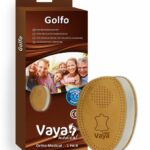 Wkładki ortopedyczne Vaya Golfo to skórzane pół wkładki wielokrotnego użycia, które zapewniają komfort stopom z płaskostopiem poprzecznym. Obniżenie fizjologicznego łuku poprzecznego stopy jakie występuje przy tym płaskostopiu, jest redukowane dzięki wbudowanej pelocie. Element ten podpiera mięśnie kłębu palucha redukując przeciążenia. Wkładka zapobiega zmęczeniu stóp i dolegliwościom bólowym. Jeśli masz problem z płaskostopiem, to proponowane wkładki Golfo będą dla Ciebie doskonałym rozwiązaniem, ponieważ odciążają i amortyzują śródstopie. Przyniosą ulgę w bólu osobom, których źródłem problemu jest obniżenie łuku stopy często związanego z niewydolnością mięśni i więzadeł. Vaya Golfo są produktami kontynuującymi tradycje wkładek Scholl.