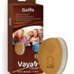 Wkładki ortopedyczne Vaya Golfo to skórzane pół wkładki wielokrotnego użycia, które zapewniają komfort stopom z płaskostopiem poprzecznym. Obniżenie fizjologicznego łuku poprzecznego stopy, jakie występuje przy tym płaskostopiu, jest redukowane dzięki wbudowanej pelocie. Element ten podpiera mięśnie kłębu palucha, redukując przeciążenia. Wkładka zapobiega zmęczeniu stóp i dolegliwościom bólowym. Jeśli masz problem z płaskostopiem, to proponowane wkładki Golfo będą dla Ciebie doskonałym rozwiązaniem, ponieważ odciążają i amortyzują śródstopie. Przyniosą ulgę w bólu osobom, których źródłem problemu jest obniżenie łuku stopy, często związanego z niewydolnością mięśni i więzadeł. Vaya Golfo są produktami kontynuującymi tradycje wkładek Scholl.