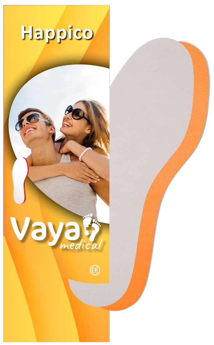 Letnie wkładki do butów Vaya Happico mają właściwości przeciwpotne. Każda wkładka jest bardzo cienka – ma tylko 2 mm grubości, ale dzięki swojej zaawansowanej technologicznie budowie posiada aż 6 warstw. Każda warstwa pełni unikalną funkcję zapewniając świeżość, komfort i higienę do jednego tygodnia stosowania wkładki. Vaya Happico są idealne dla bosych stóp, sprawdzają się w obuwiu sportowym, trampkach czy tenisówkach. Jeden pakiet pozwala na świeżość i higienę przez osiem tygodni.