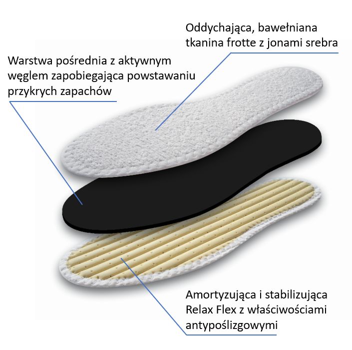 - Wygodne – nie przeszkadzają w codziennym użytkowaniu, amortyzują stopę.