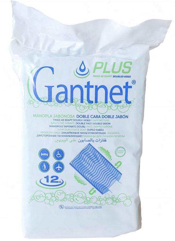 GANTNET PLUS – Dwustronnie nasączona myjka do ciała „rękawica” 12szt to jednorazowe myjki przeznaczone do mycia ciała pacjentów w szpitalach, placówkach medycznych oraz w środowisku chorego. Wykonane z włókien poliestrowych, nasączone obustronnie środkami myjącymi o neutralnym pH 5,5, zapewniają komfort i bezpieczeństwo podczas mycia. Produkt idealny do stosowania w opiece medycznej.
